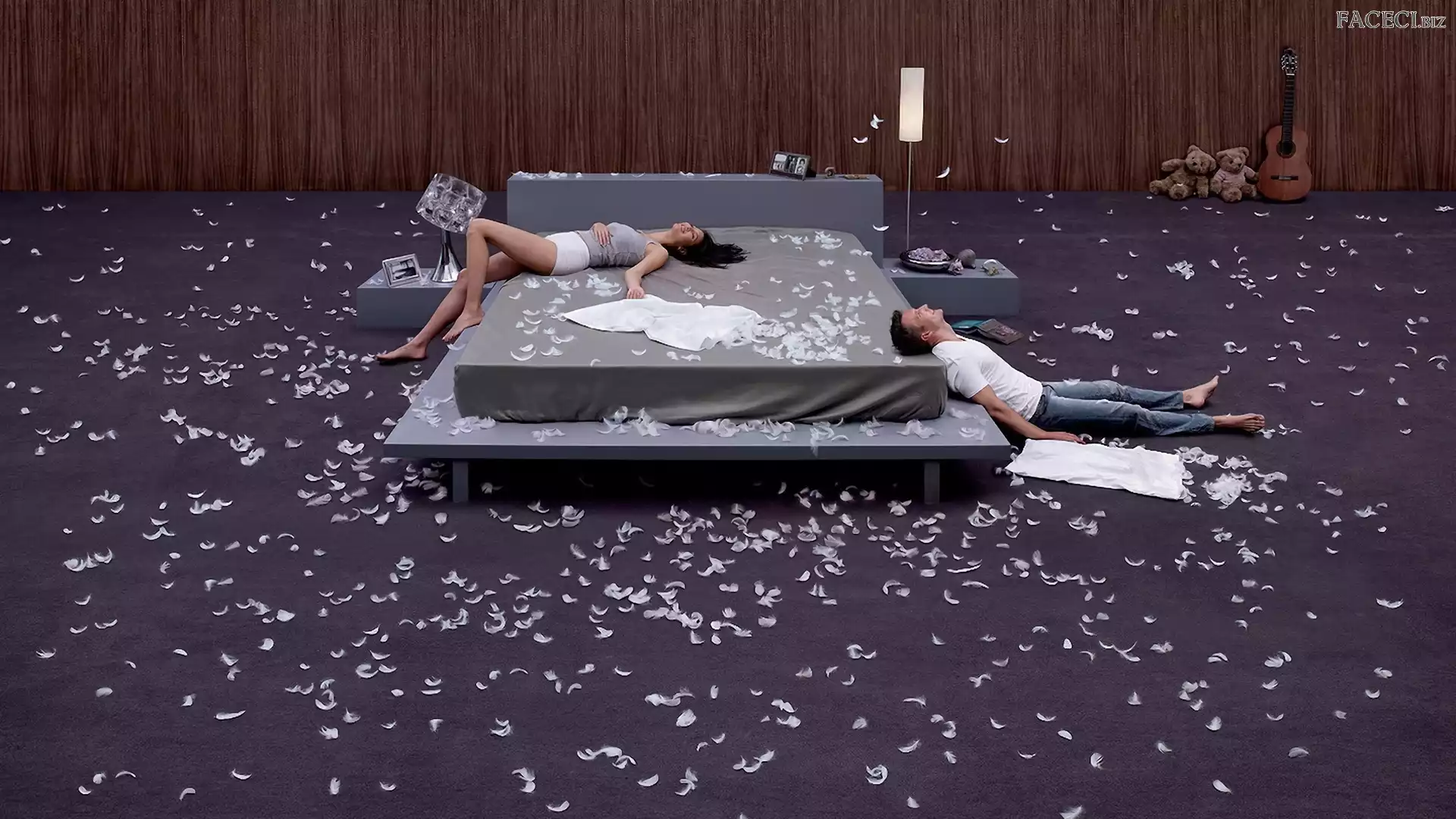 Mężczyzna, Piórka, Kobieta, Łóżko - faceci.biz